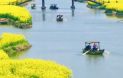 3.赏【兴化千垛菜花】,垛田状的岛上油菜花在水面上形成一片片金黄色“花海”;